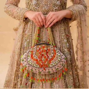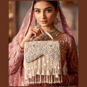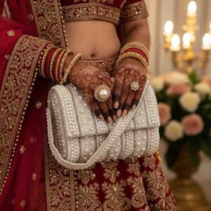 Elegant Pearl Bridal Bag for Saree – Handcrafted Wedding Clutch