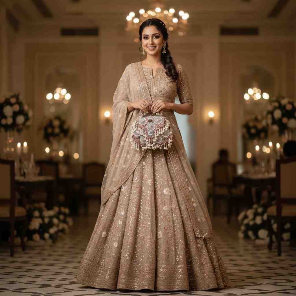 If you are searching for a premium Indian wedding bridal bag that combines tradition with elegance, this handcrafted bridal handbag is the perfect choice for your bridal trousseau. It is not just an accessory — it is a statement piece designed for your most special day.